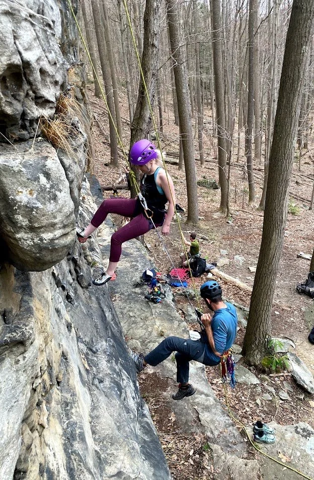 Most of the cliffs at Coopers are easily accessible from the top so the park offers exceptional ease for instruction of top rope anchor instruction classes to learning to lead trad courses to a private guided day of top roping and rappelling.